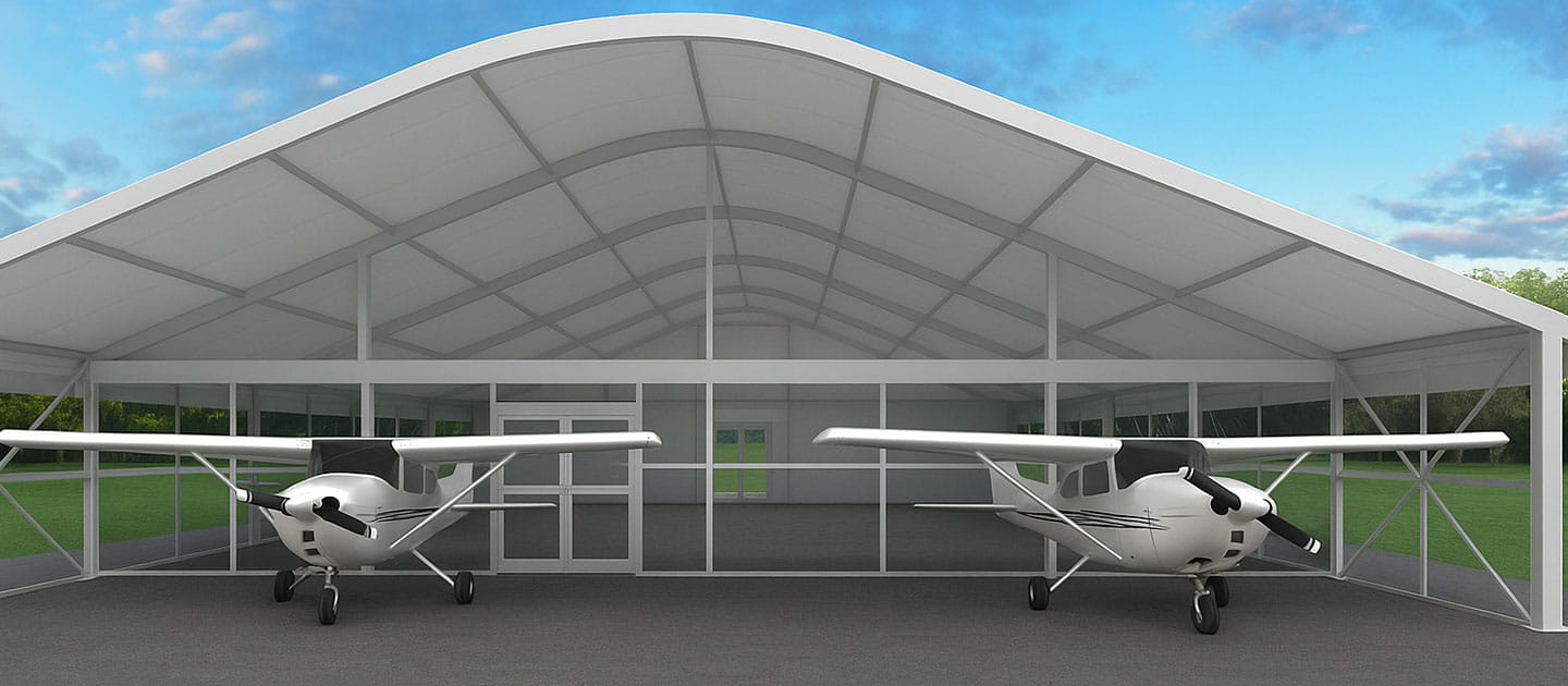 A:Our structures can house helicopters, drones, and small to mid-sized aircraft such as the Cessna Caravan, King Air, or similar models. Custom sizing is available for larger aircraft.